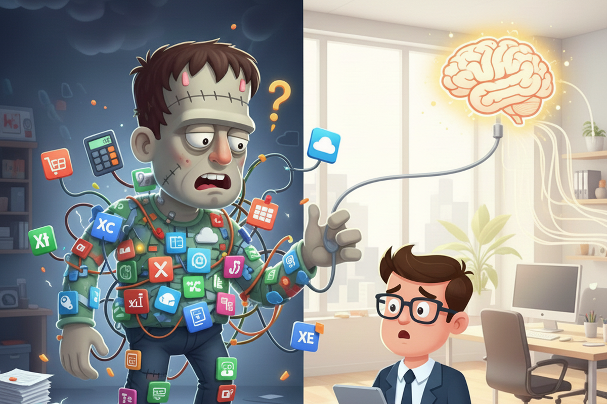 La razón de este conflicto es la Ilusión de la Eficiencia. Creen estar digitalizados, pero en realidad, han caído en el Frankenstein Tecnológico: han cosido su operativa con piezas brillantes que no comparten el mismo sistema nervioso.